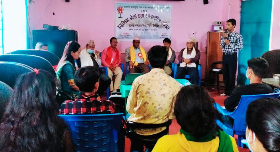 विगत एक दशक देखि देशभरका थुर्पै ठाउँहरुमा तालिम संचालन गर्दै आएको साझा संञ्चार नेपाल प्रा.लि चावहिल काठमाण्डौको आयोजनामा उक्त तालिम संञ्चालन गरिएको हो । हाल सम्म सयौको संख्यामा पत्रकारिता तथा आम संञ्चारका क्षेत्रमा सक्रिय जनशक्ति उत्पादन गरीसकेको उक्त संस्थाको दावि छ ।