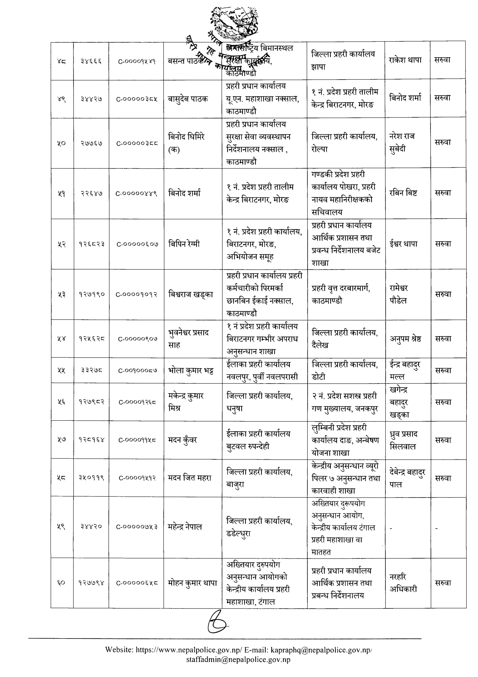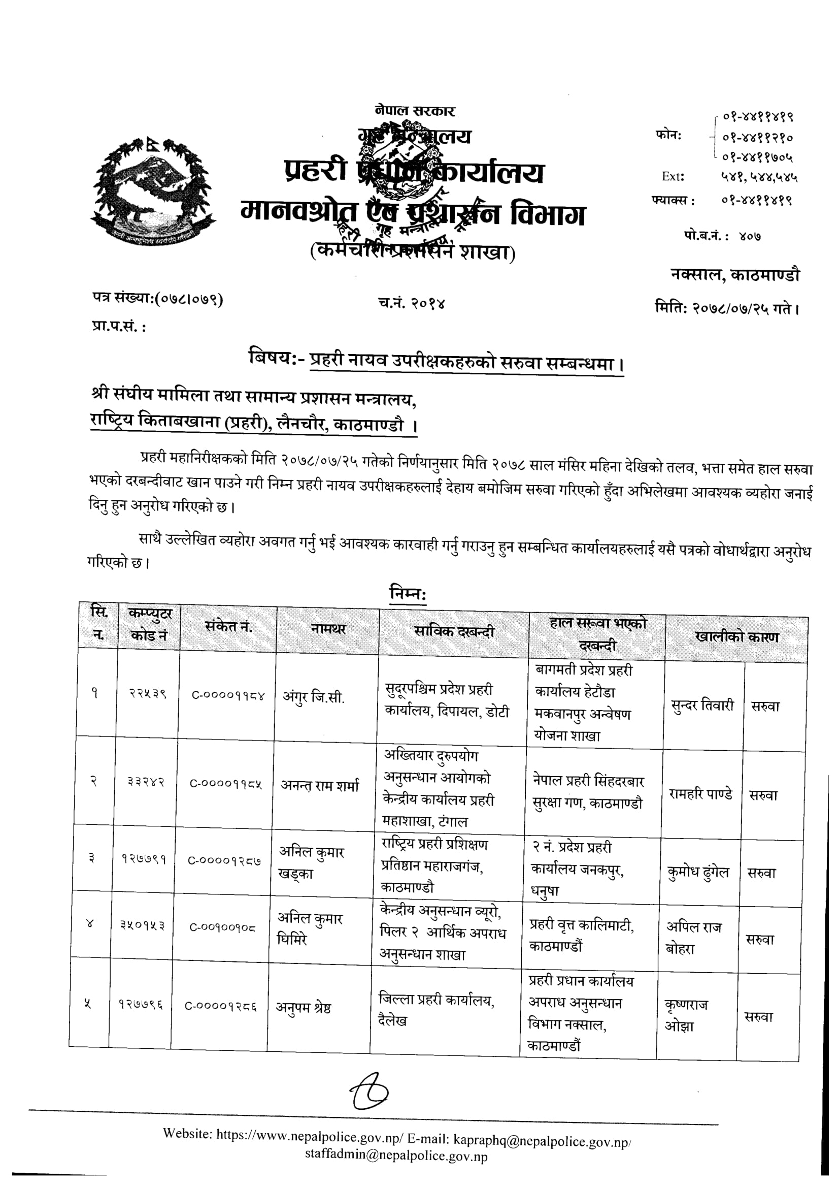 प्रहरी प्रधान कार्यालयका अनुसार डीएसपी श्रेष्ठको प्रहरी प्रधान कार्यालय, अपराध अनुसन्धान विभाग नक्साल सरुवा भएको हो । प्रहरी प्रधान कार्यालयले डीएसपी श्रेष्ठलार्य २०७७ भदौ १५ गते जिल्ला प्रहरी कार्यालय दैलेखमा खटाएको थियो ।