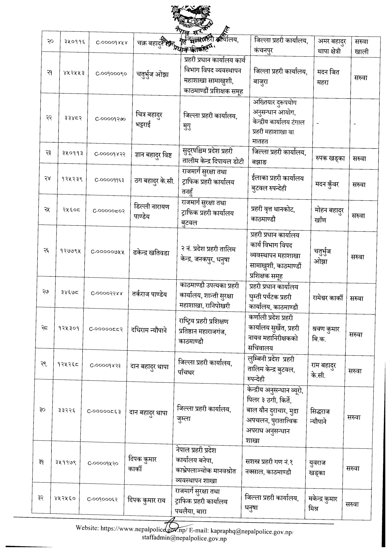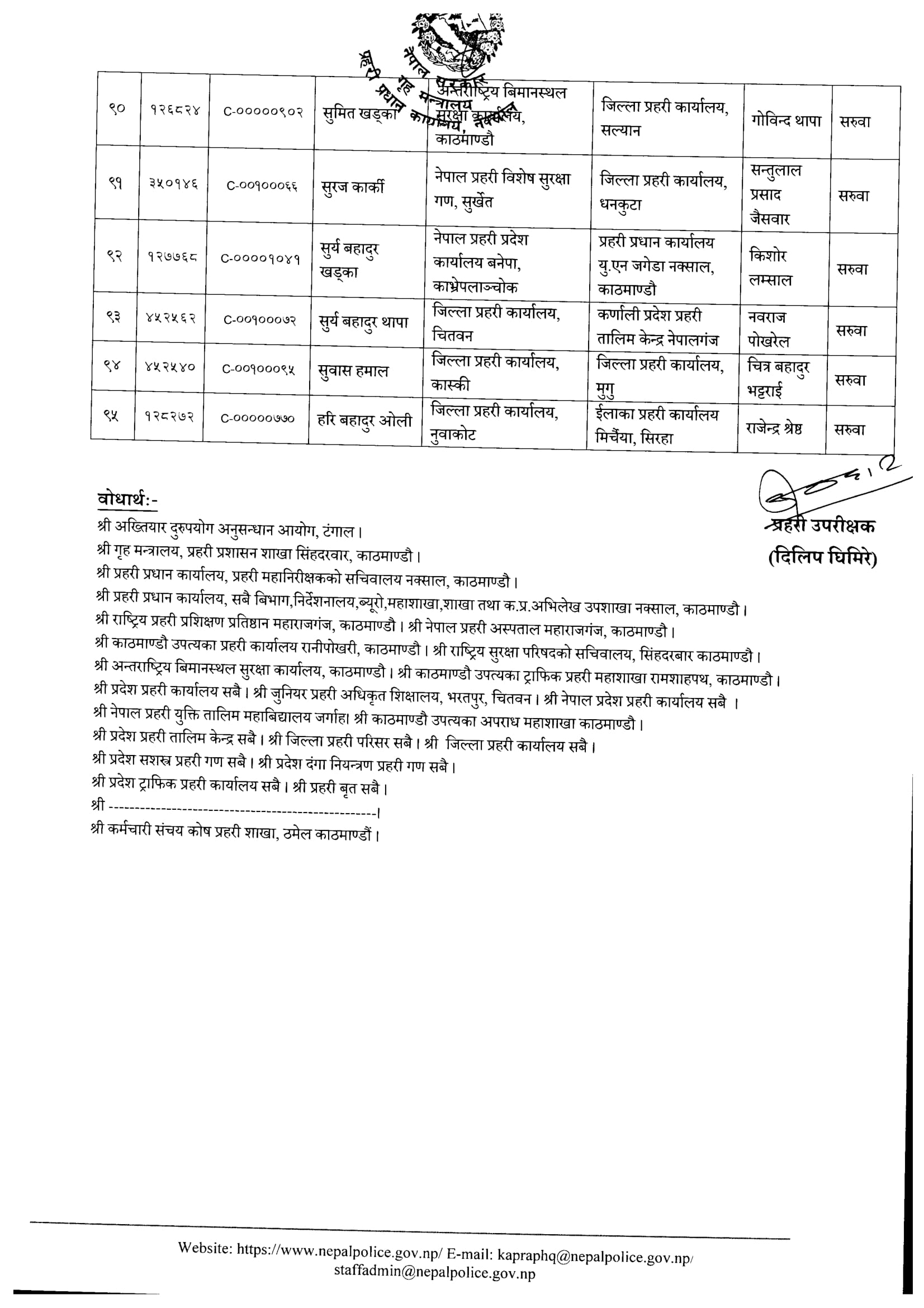 दैलेख : जिल्ला प्रहरी कार्यालय दैलेखमा कार्यरत प्रहरी नायव उपरीक्षक (डीएसपी) अनुपम श्रेष्ठको सरुवा भएको छ । प्रहरी प्रधान कार्यालयले बिहीबार ९५ जना डीएसपीको सरुवा निकालेको हो ।